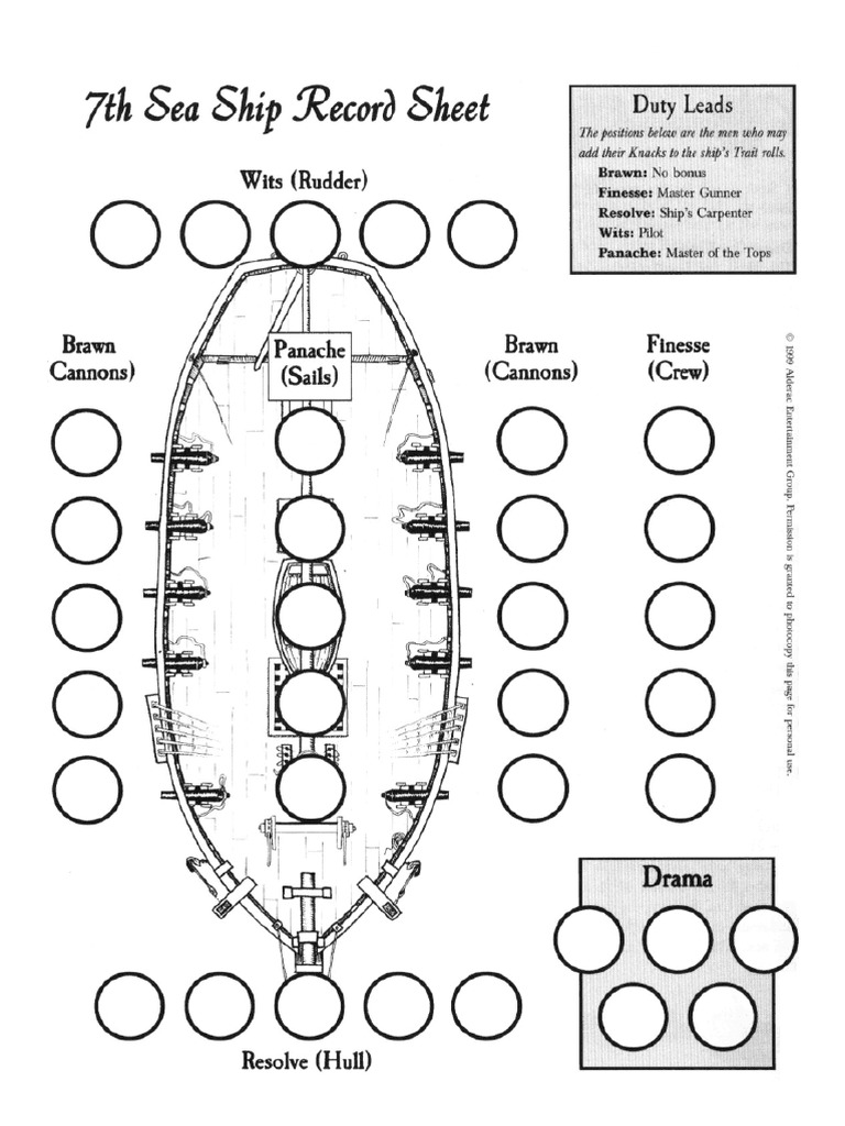 7th Sea Ship Record Sheet PDF