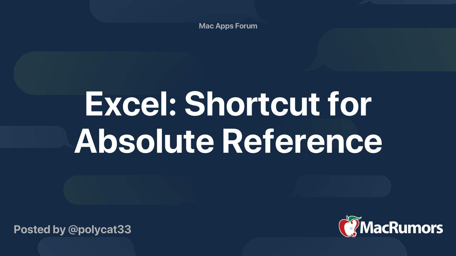 Excel Shortcut for Absolute Reference MacRumors Forums