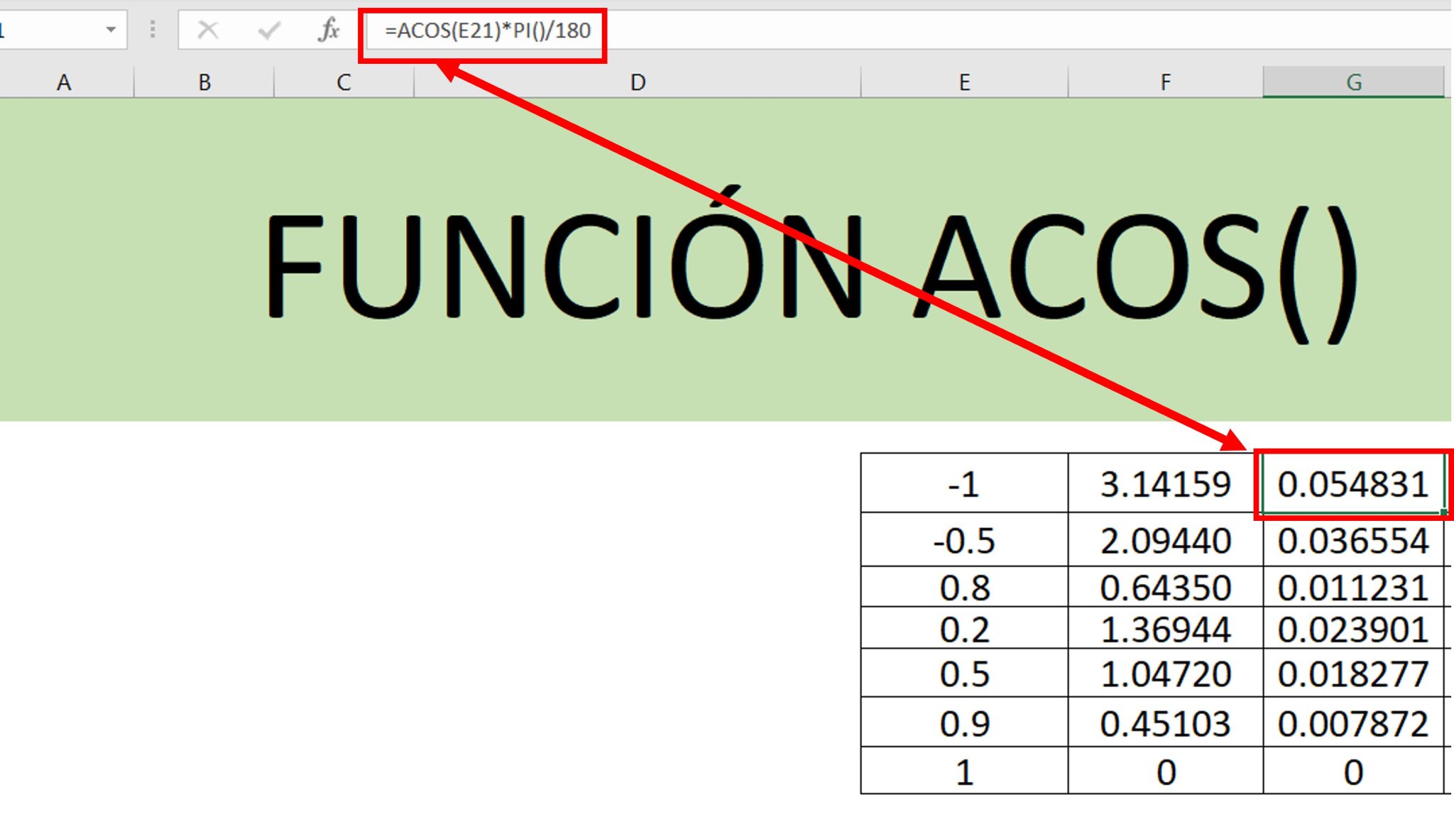 7.2 Función ACOS Fórmulas y Funciones en Excel YouTube