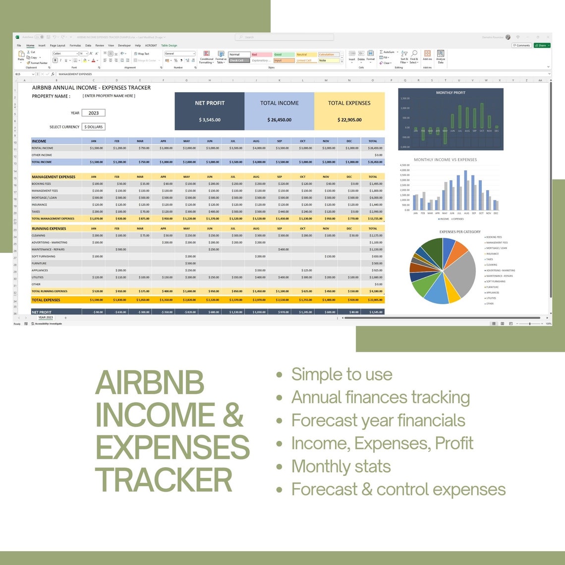 Airbnb Expenses Tracker, Excel Spreadsheet Template, Rental