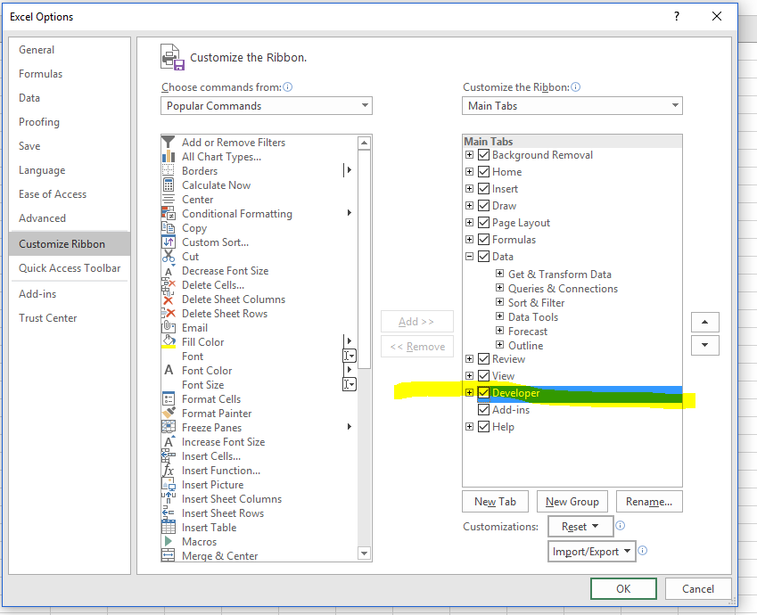 Alt+F11 is not working to open the developer tab in excel 2016