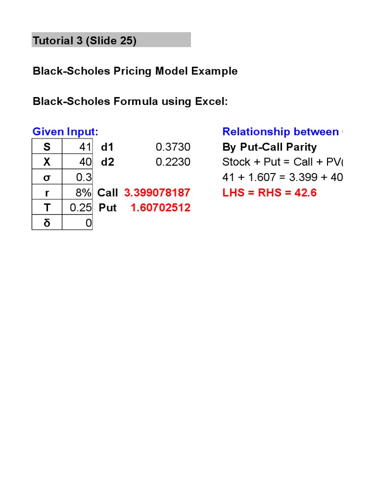 Tutorial 3 (Slide 25) BlackScholes Pricing Model Example BlackScholes