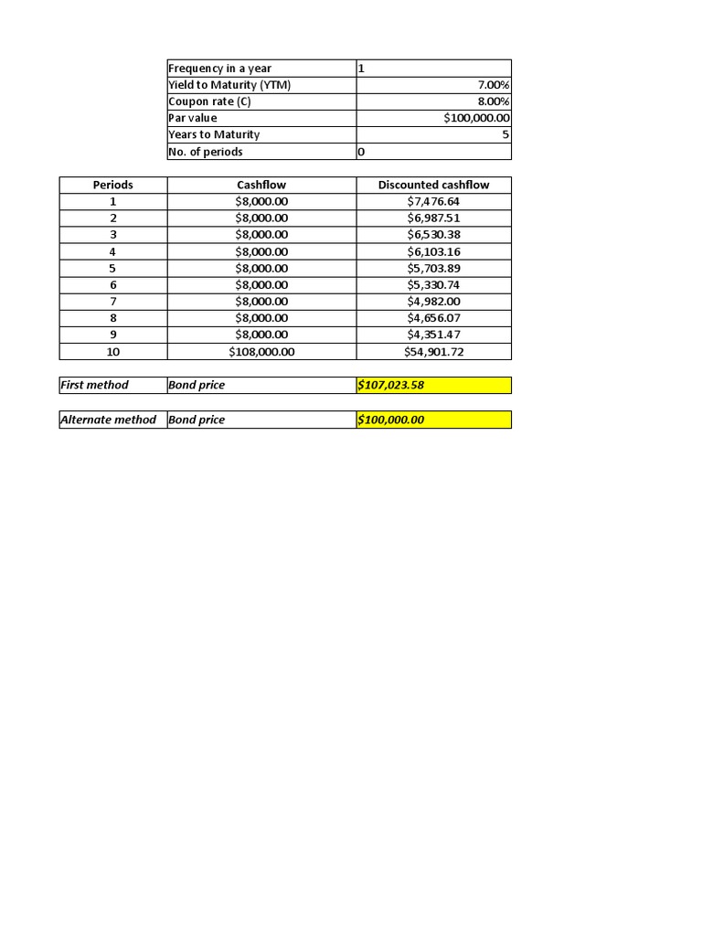 Bond Pricing Formula Excel Template
