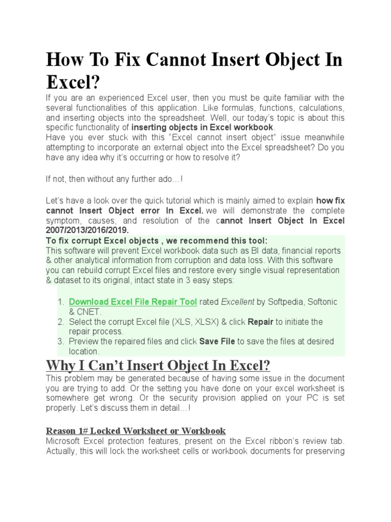 Fix Cannot Insert Object in Excel PDF Microsoft Excel Computer File