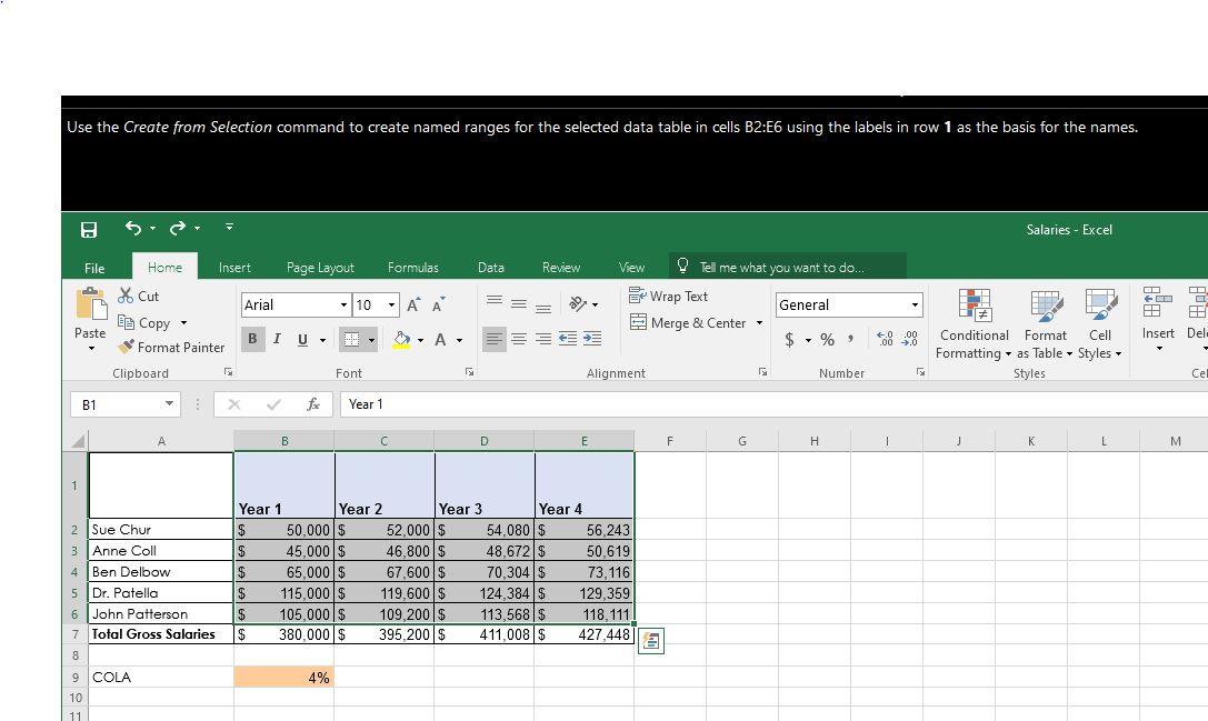 Define Name By Create From Selection Command And Insert A Formula YouTube