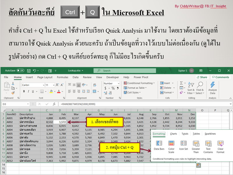 เรียก Quick Analysis ใน Excel ด้วย Ctrl + Q