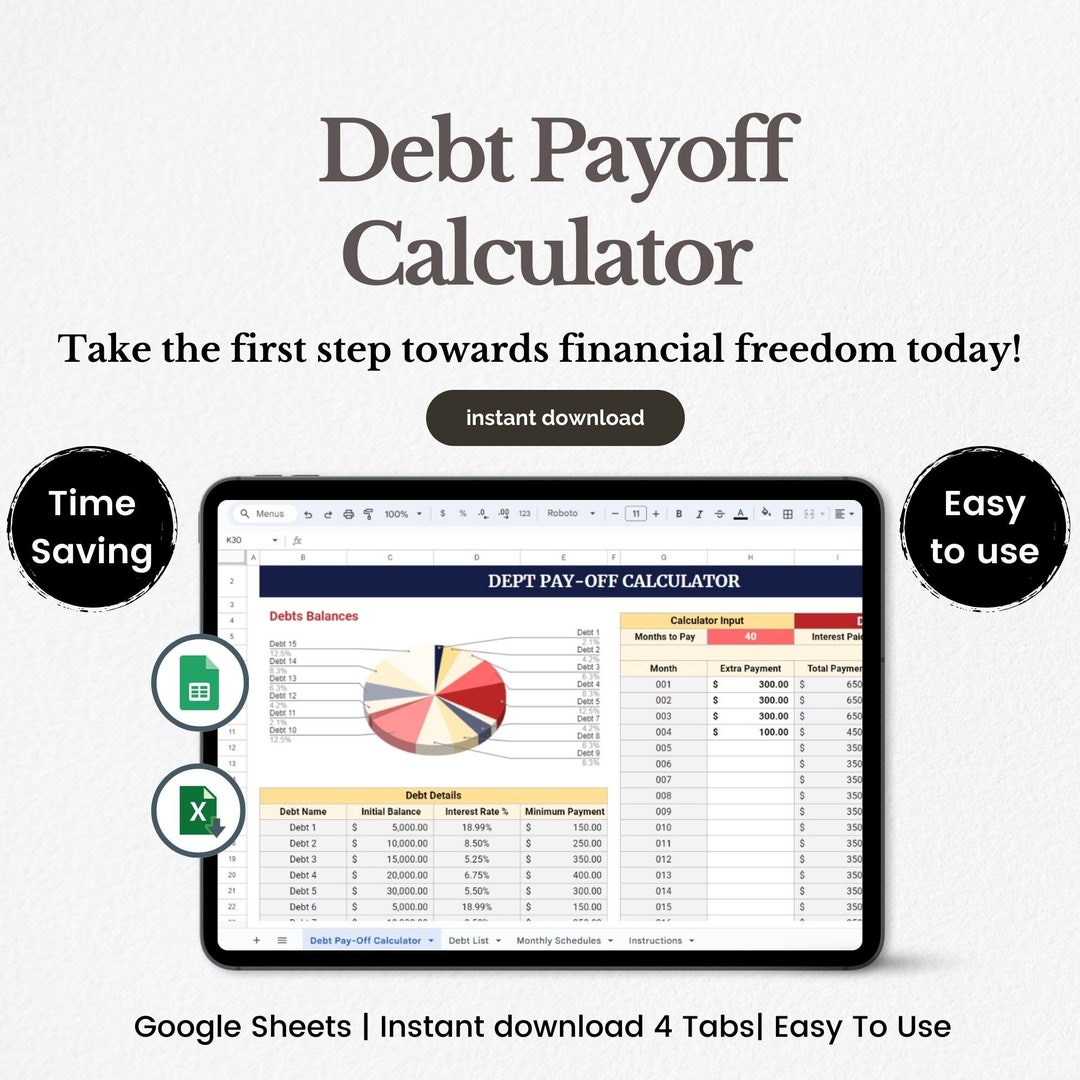 Debt Payoff Calculator Excel Template, Debt Payment Plan, Payoff Debt
