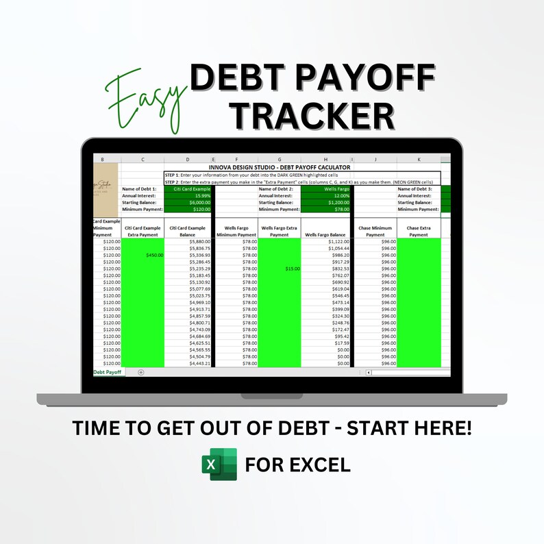 Debt Payoff Excel Spreadsheet, Debt Snowball Calculator, Debt Payoff