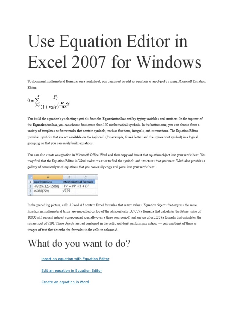 Equation Editor in Excel Download Free PDF Formula Microsoft Excel