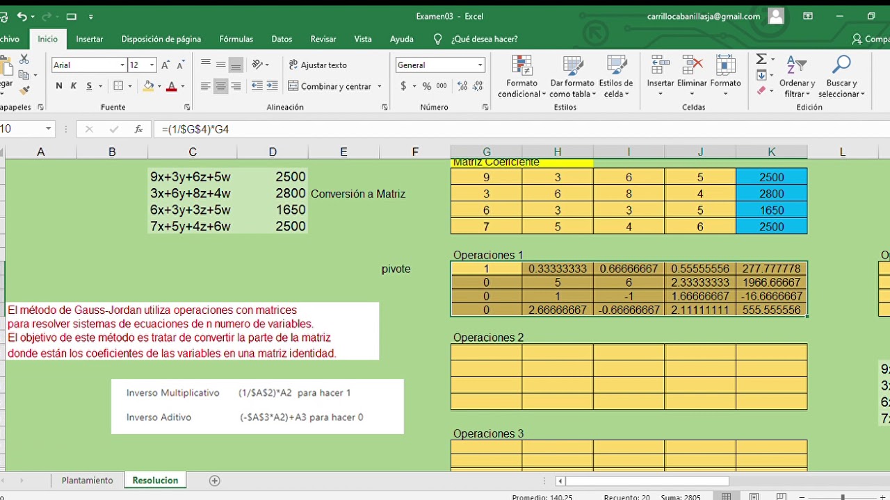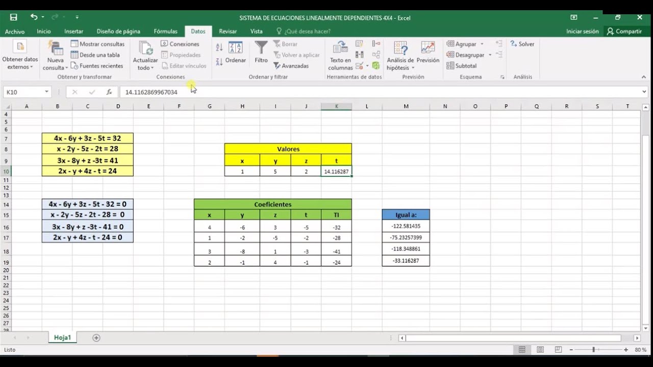 Ejemplo de sistema de ecuaciones lineales 4x4 Excel 2020 10 30 16 58 19