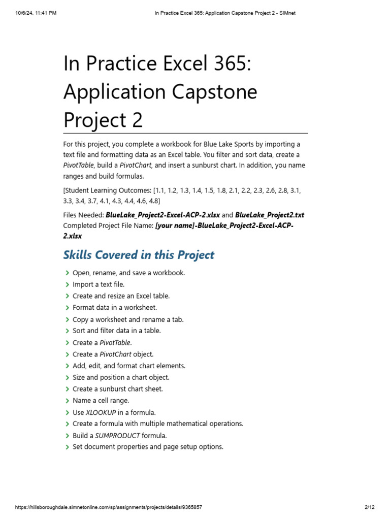 In Practice Excel 365 Application Capstone Project 2 PDF