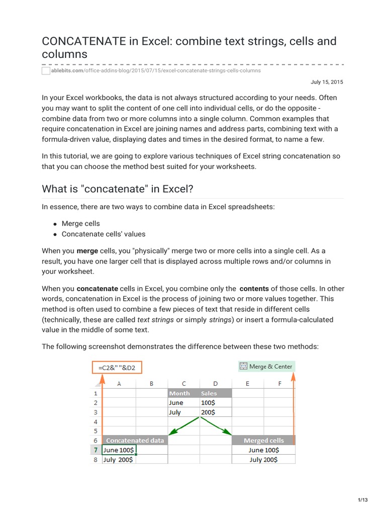 CONCATENATE in Excel Combine Text Strings Cells and Columns PDF