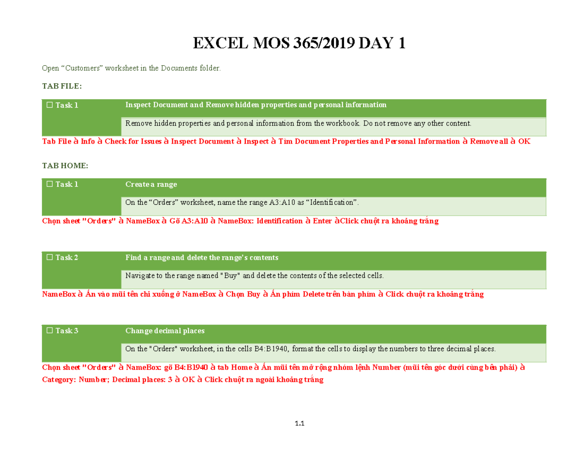 Các bước làm Excel Day 1 abc EXCEL MOS 365/2019 DAY 1 Open