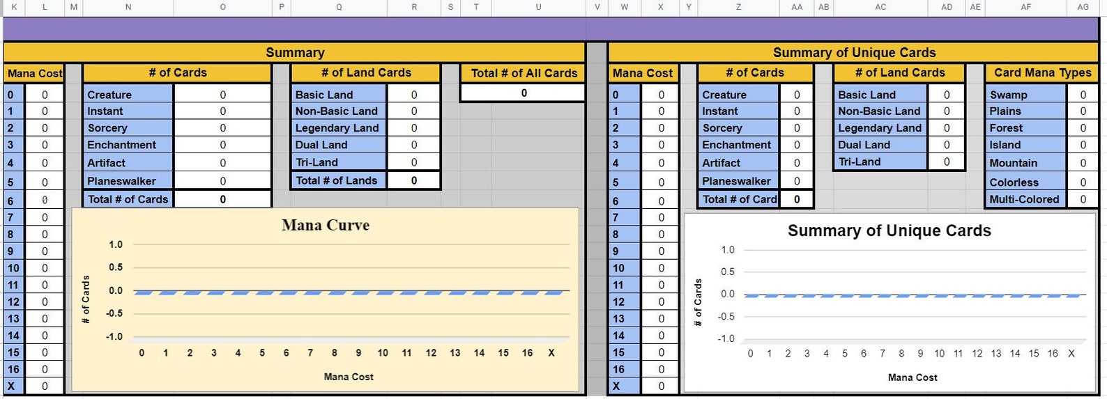 Magic the Gathering Ultimate Deck Builder for Commander Spreadsheet for