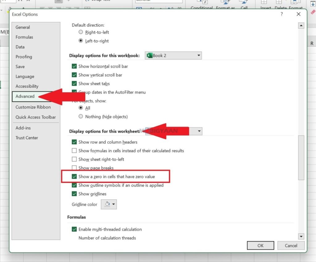 How to show or hide zero values in a Microsoft Excel sheet