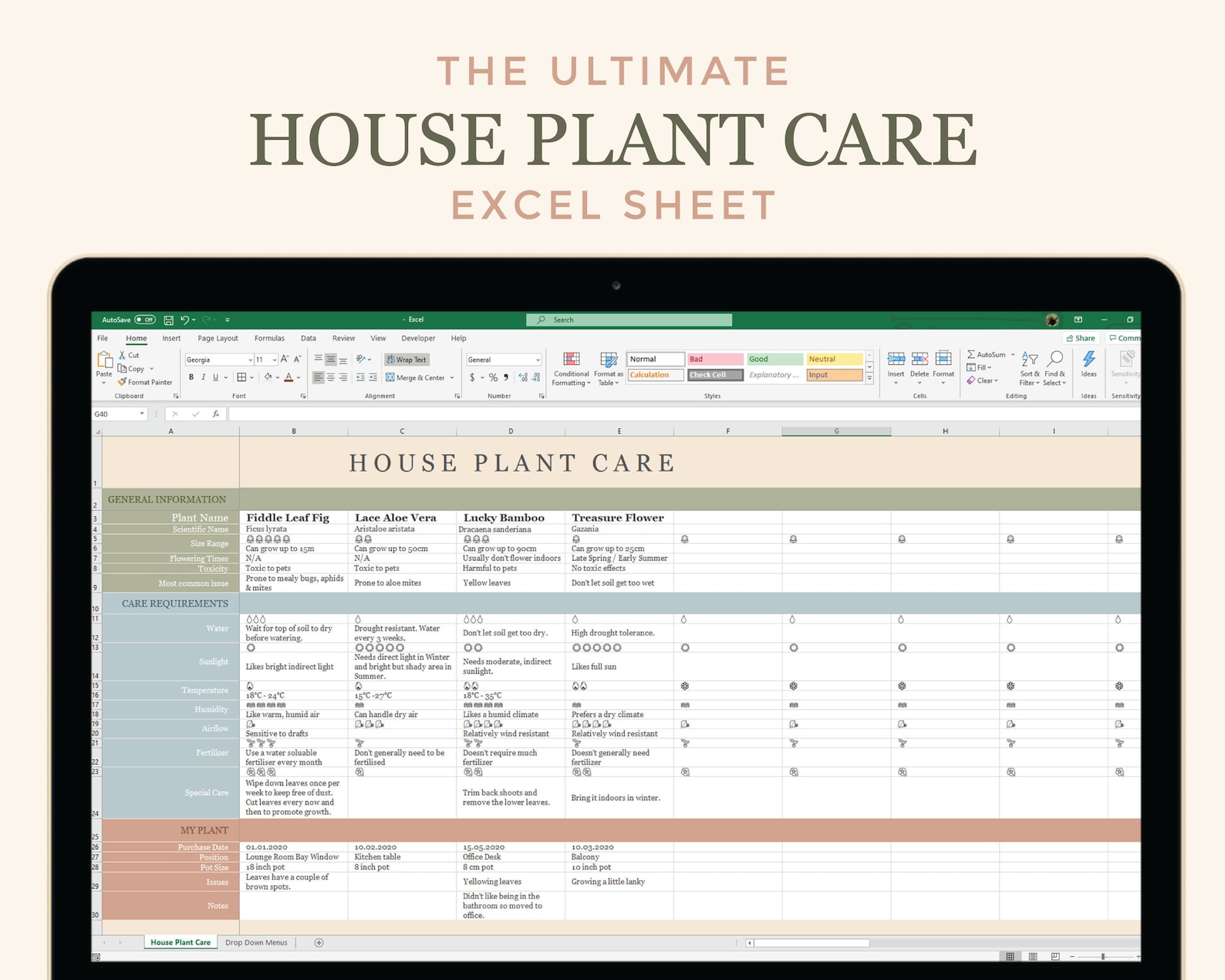 House Plant Care Excel Spreadsheet Digital Download Etsy