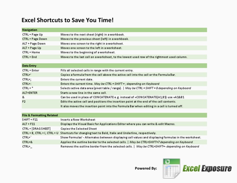 Excel Exposure Shortcuts Cheat Sheet