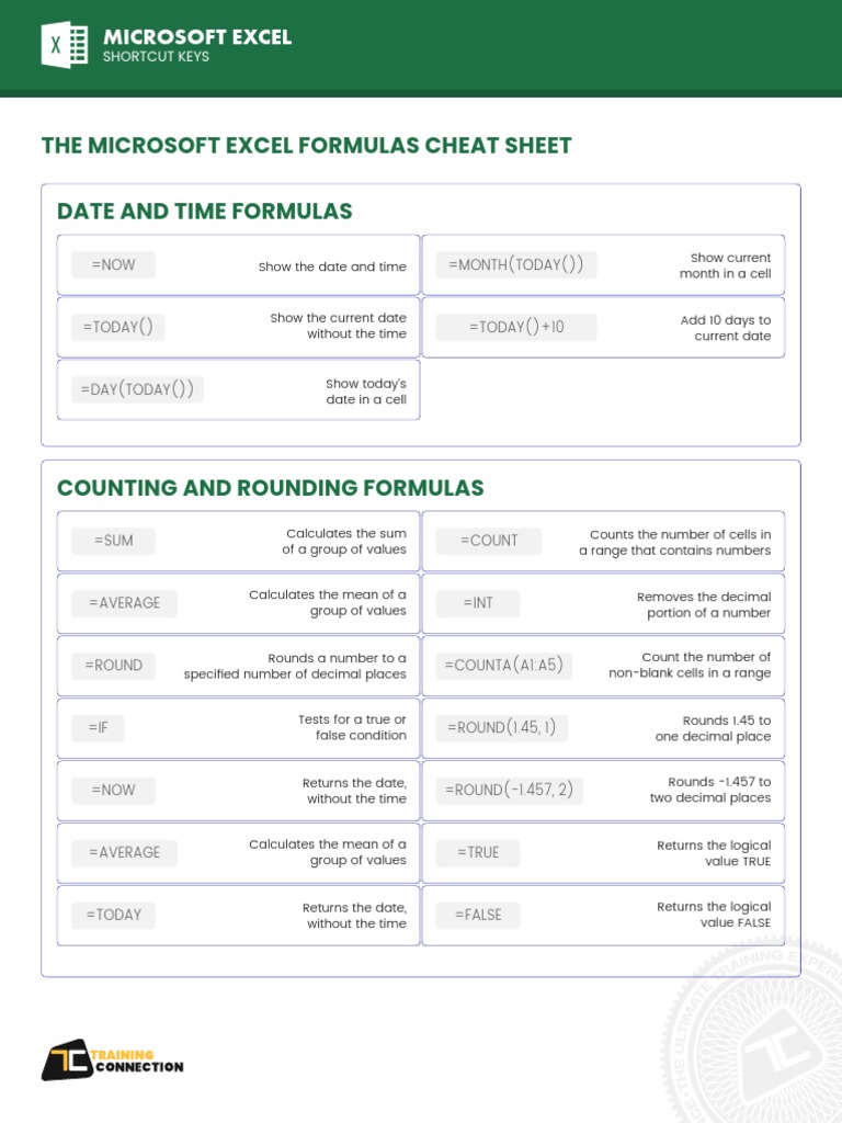 Excel Formula Cheat Sheet Printable