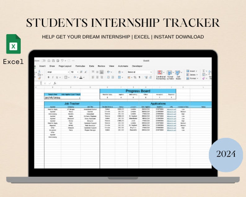 20242025 Internship Tracker Spreadsheet Etsy
