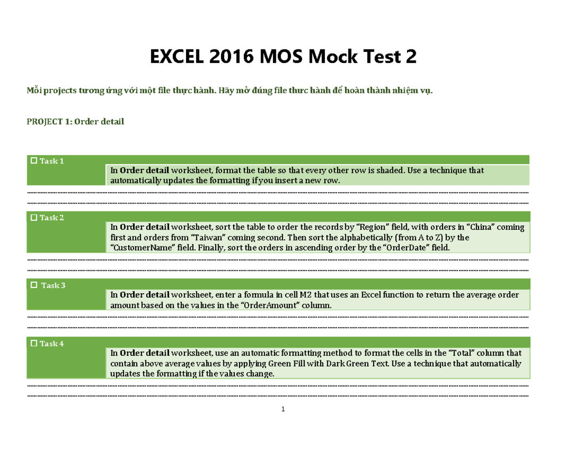 Excel Mock test 2 cxcxsdf EXCEL 2016 MOS Mock Test 2 Mỗi projects