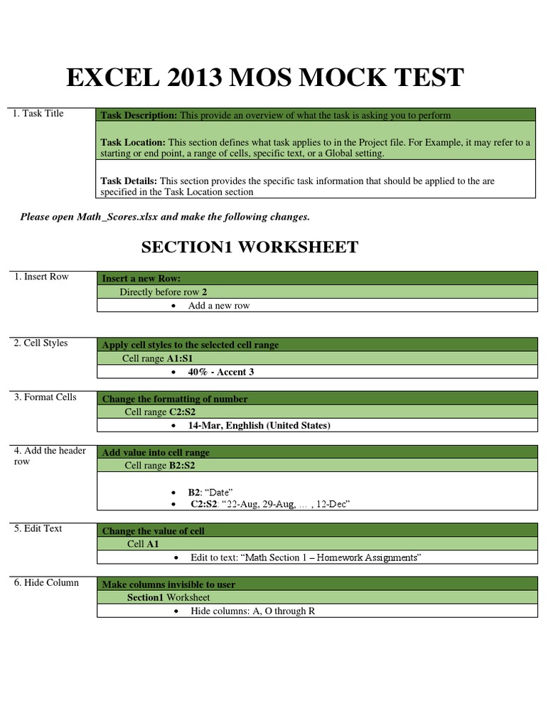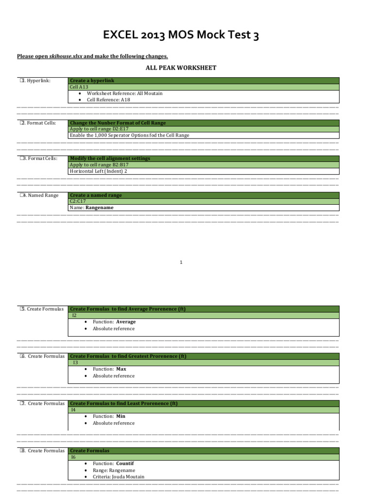 (MOS Excel) Mock Test 2 PDF Worksheet Comma Separated Values