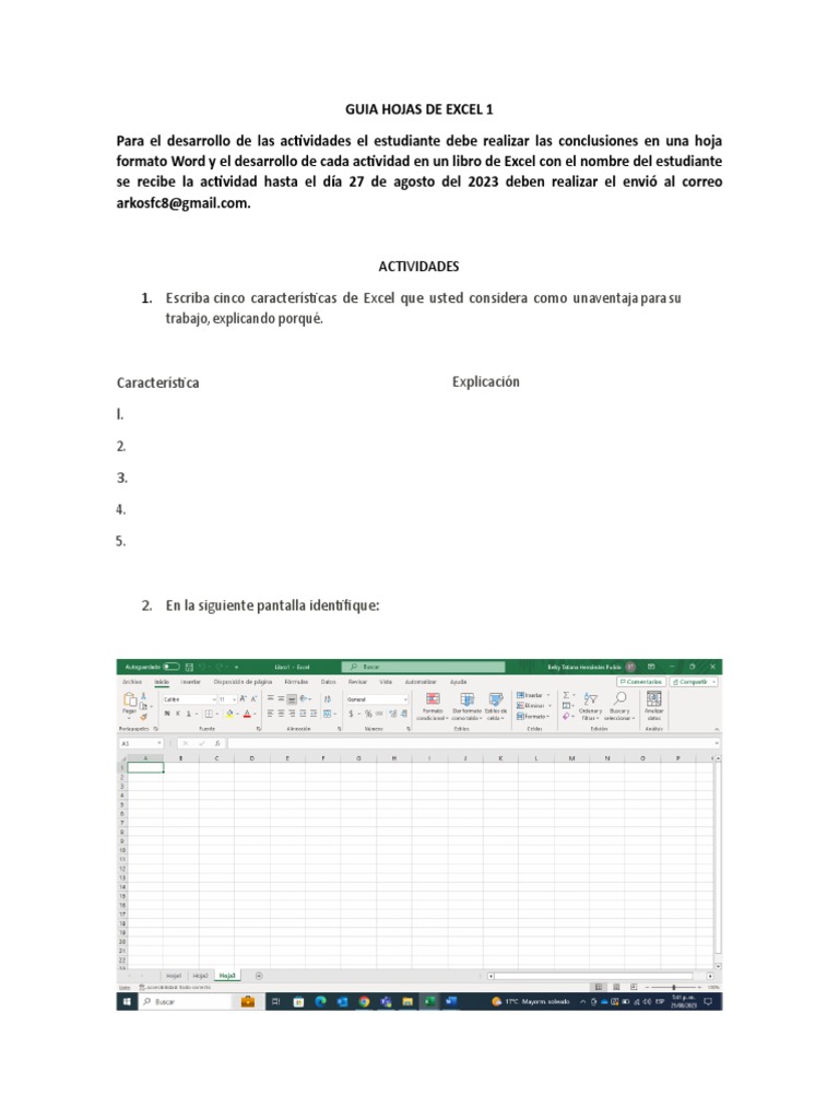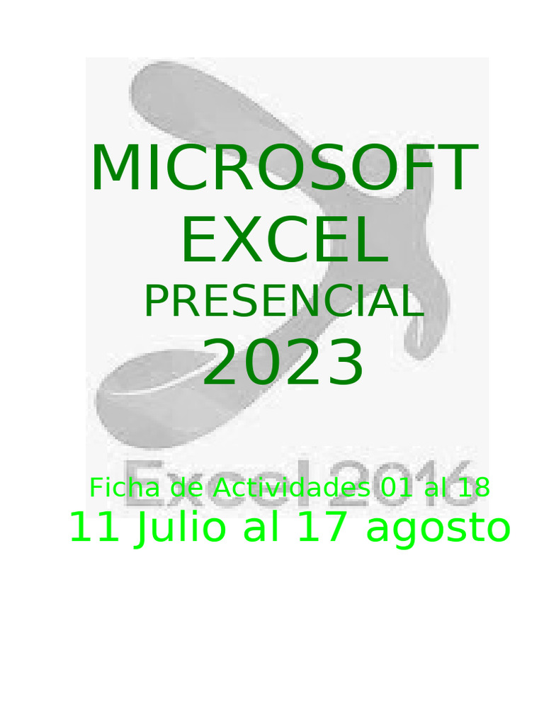 FICHA DE ACTIVIDAD DE EXCEL N 1 Al 18 Fecha 2023 PDF Hoja de