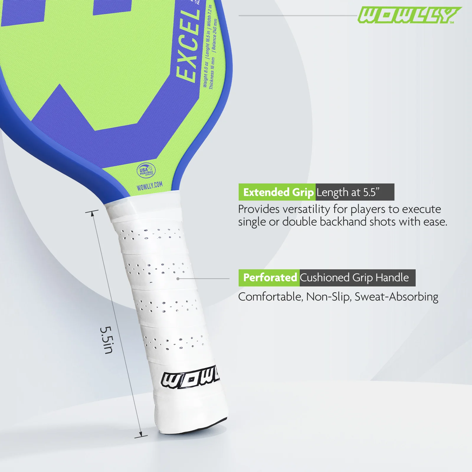 WOWLLY EXCEL SERIES PICKLEBALL PADDLE (Blue & Green) Pb Sports