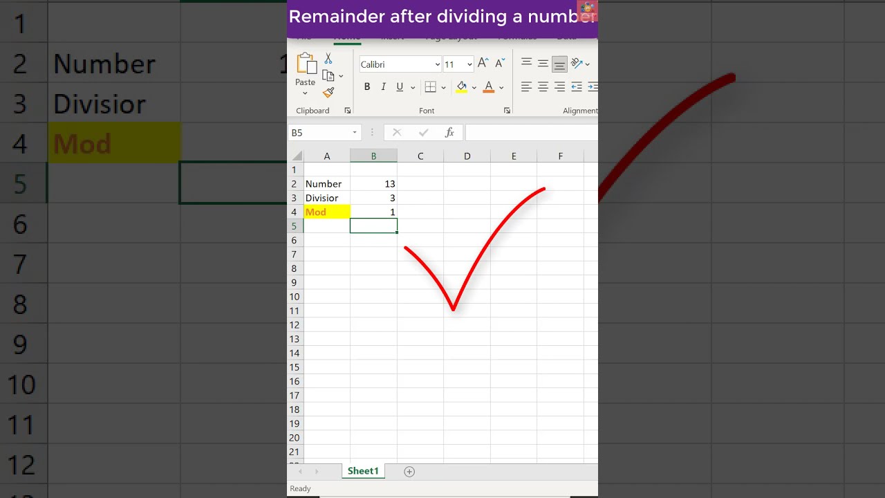 Remainder after dividing a number in MS Excel shorts YouTube
