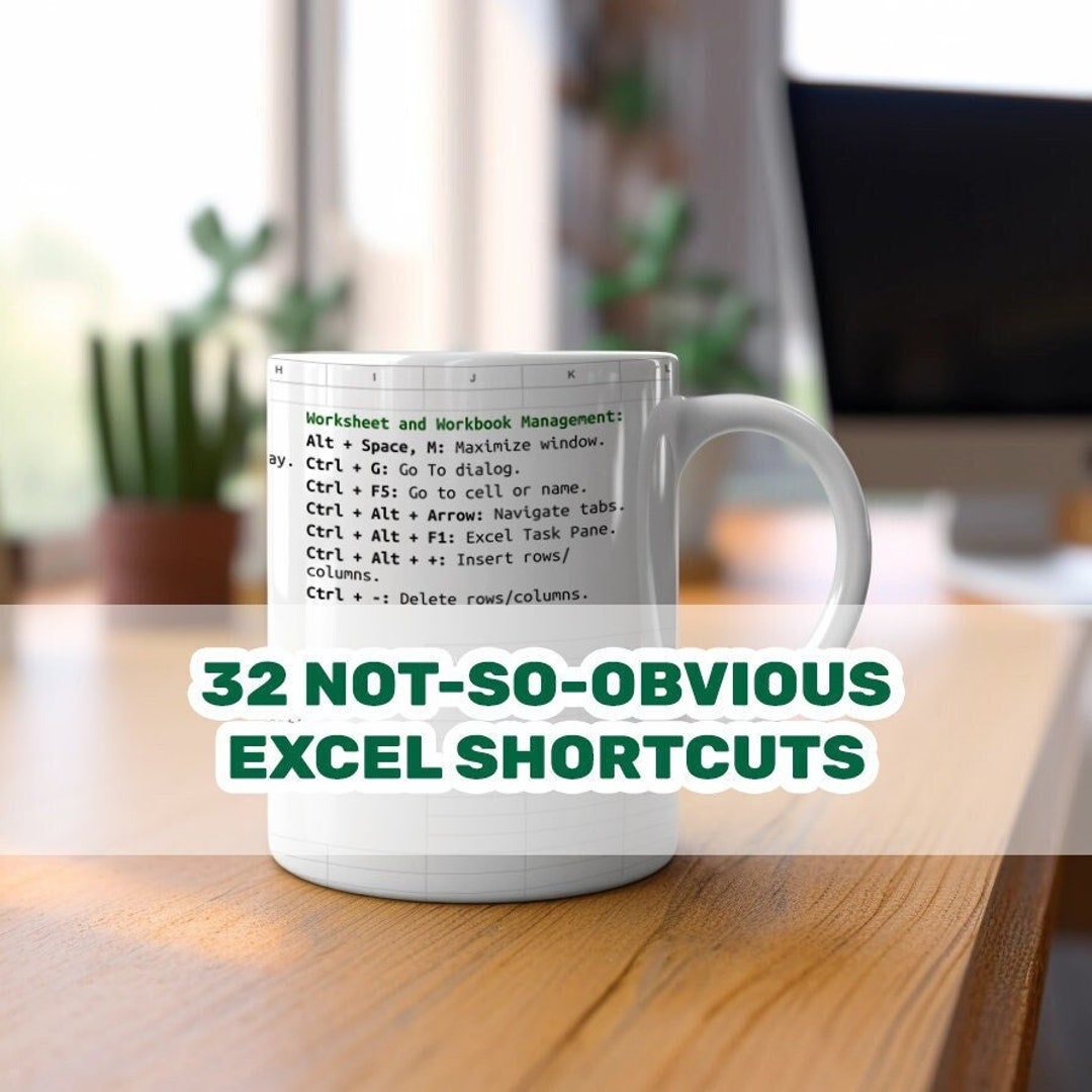 Excel Shortcuts Quick Reference Mug, Excel Shortcuts Coffee Mug, Gift