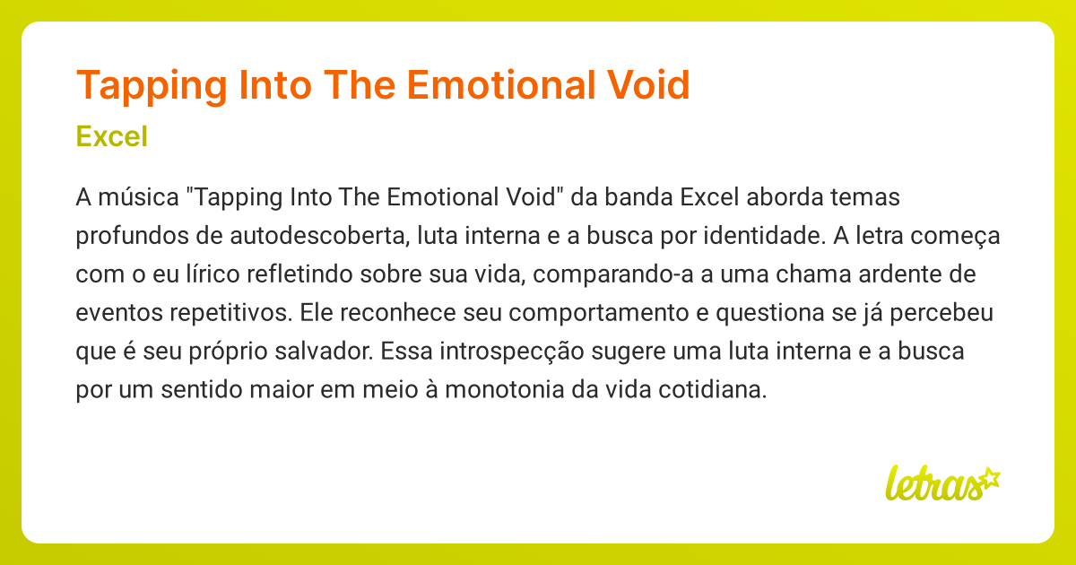 Significado da música Tapping Into The Emotional Void (Excel) LETRAS