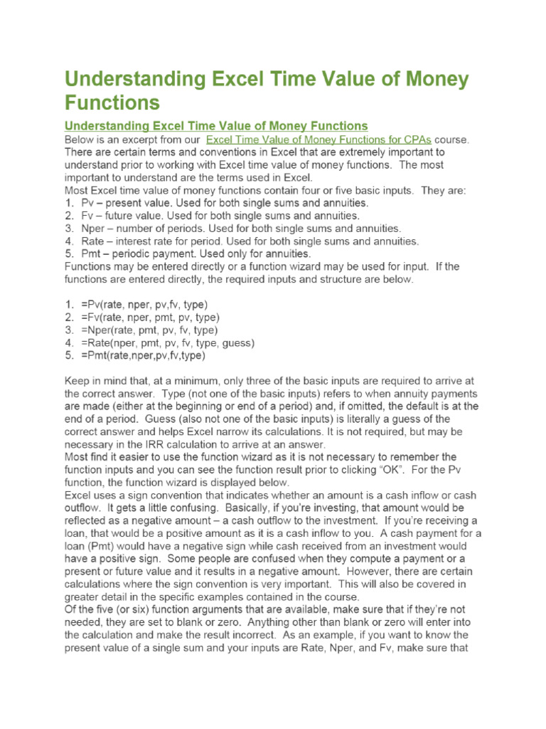 Excel Time Value Of Money