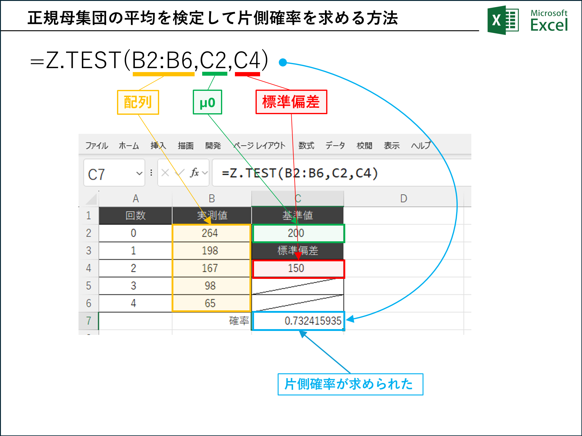 492|Excel Z.TEST関数とZTEST関数:正規母集団の平均を検定