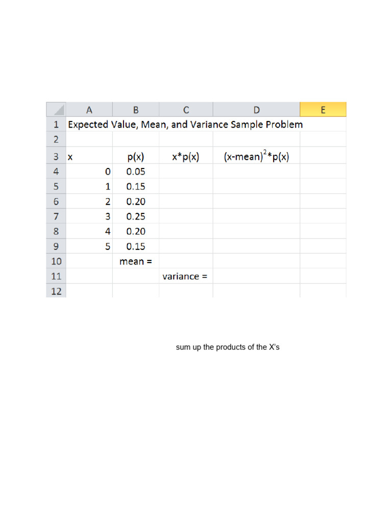 GBA334 Expected Value Mean and Variance Using Excel PDF