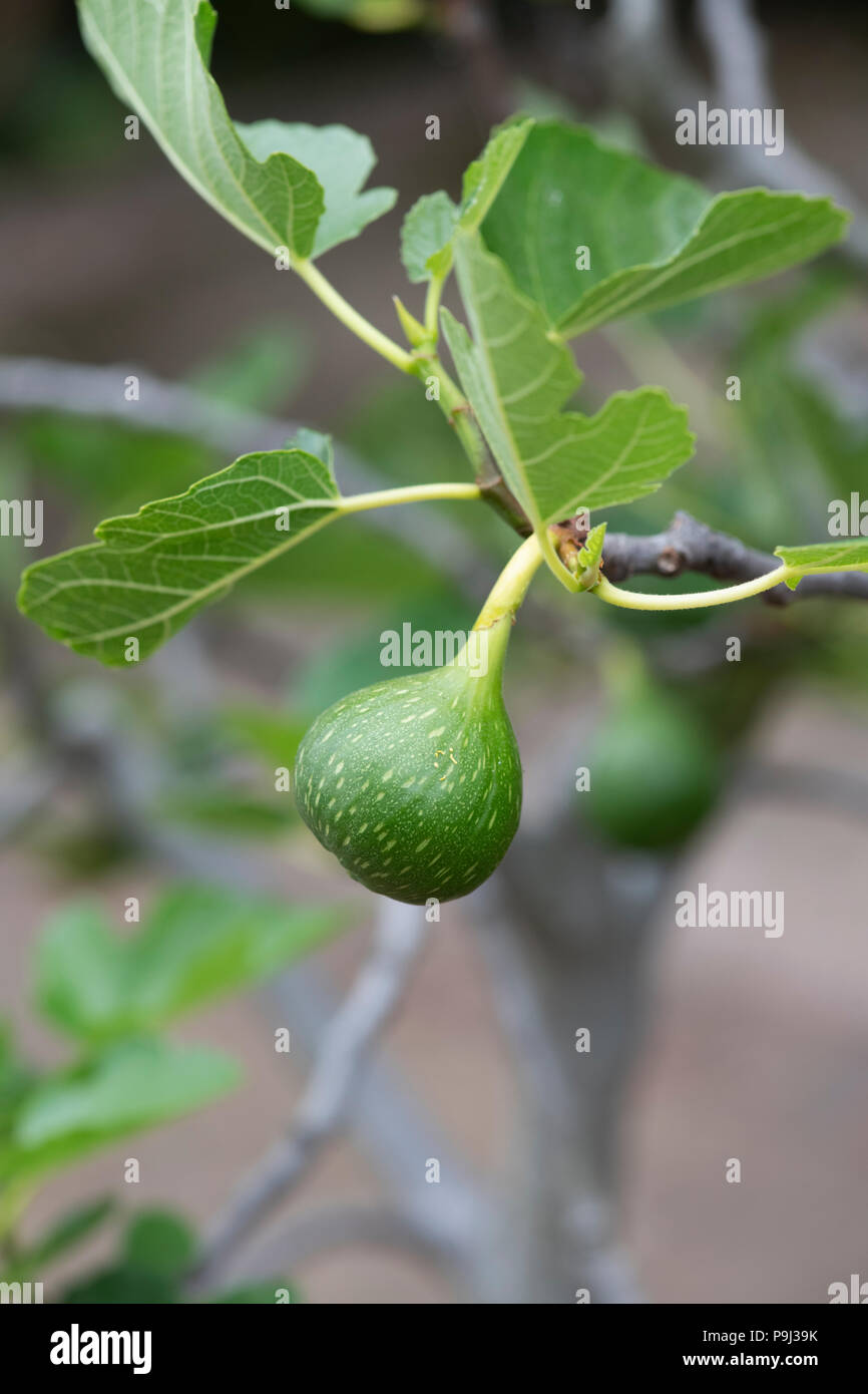 Ficus carica 'Excel', Fig excel. Developing fruit on a tree Stock Photo