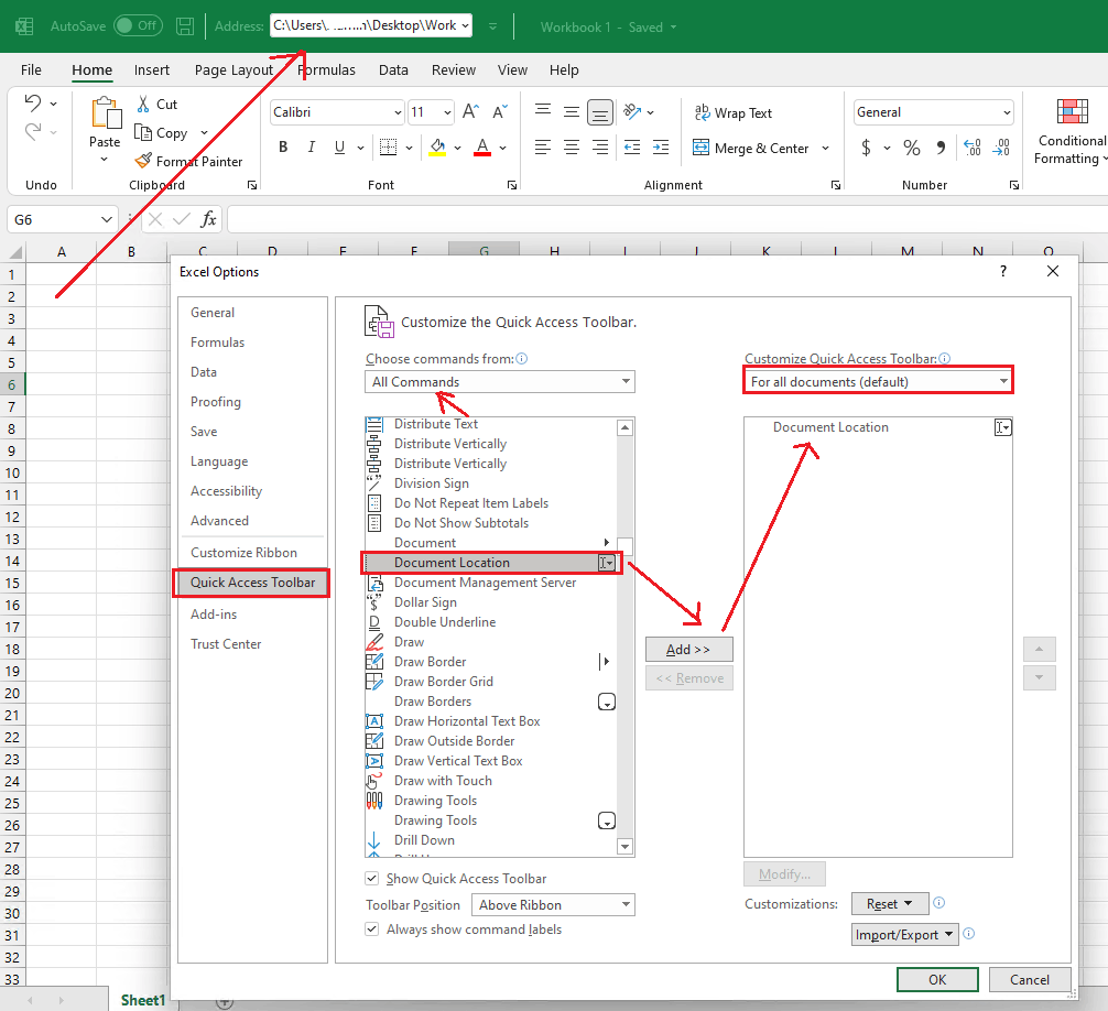 How To Show The Workbook Location In The Quick Access Toolbar How To