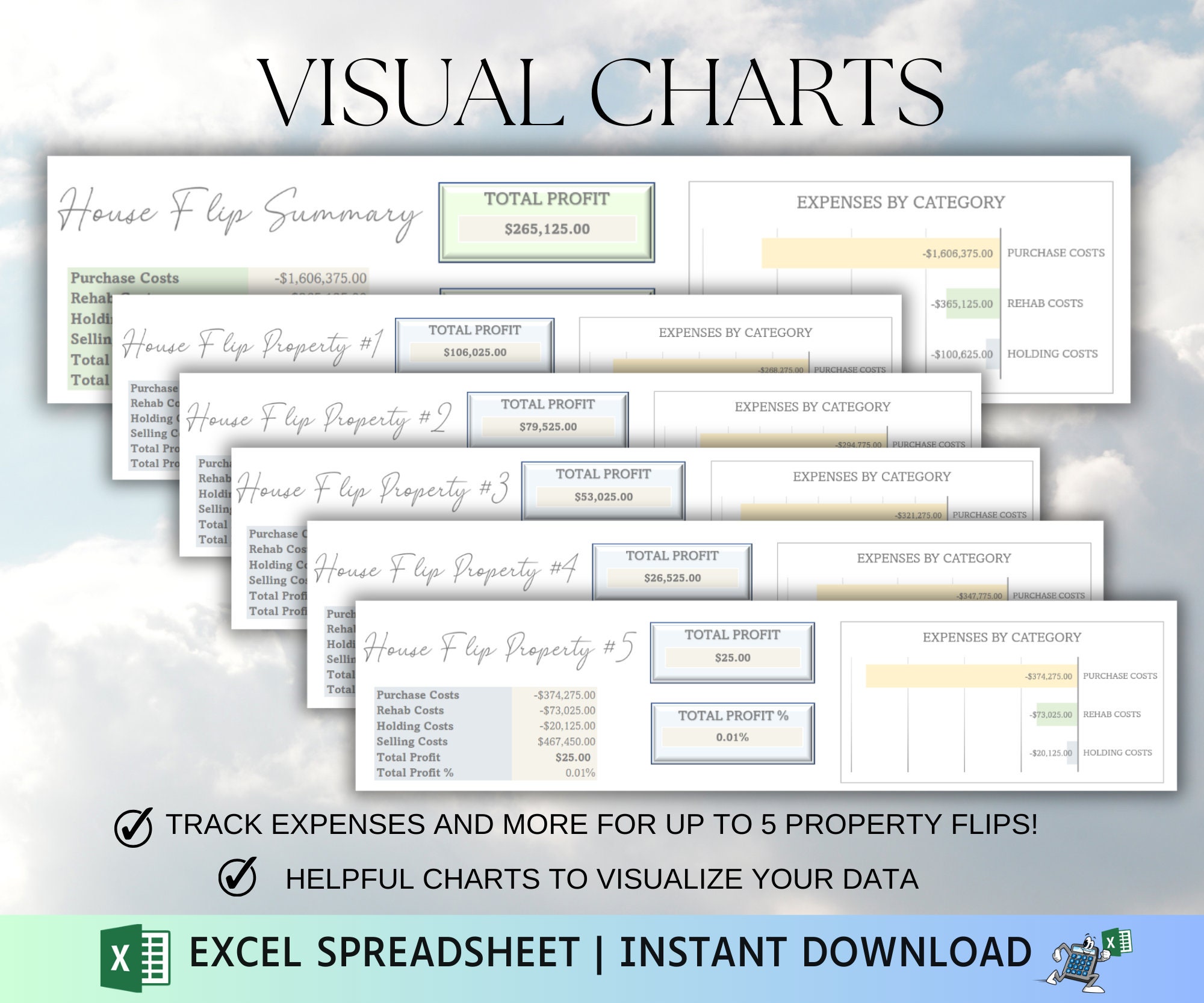 Multi Property House Flipping Calculator Spreadsheet Excel Fix and Flip