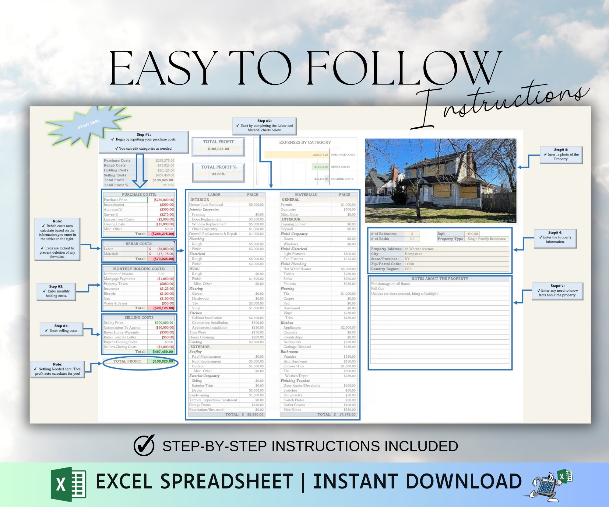 Fix & Flip Spreadsheet, Real Estate Investment Calculator, House