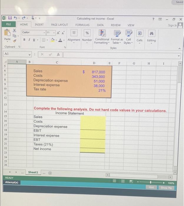 Solved Calculating net Excel 2 22 5 HOME INSERT