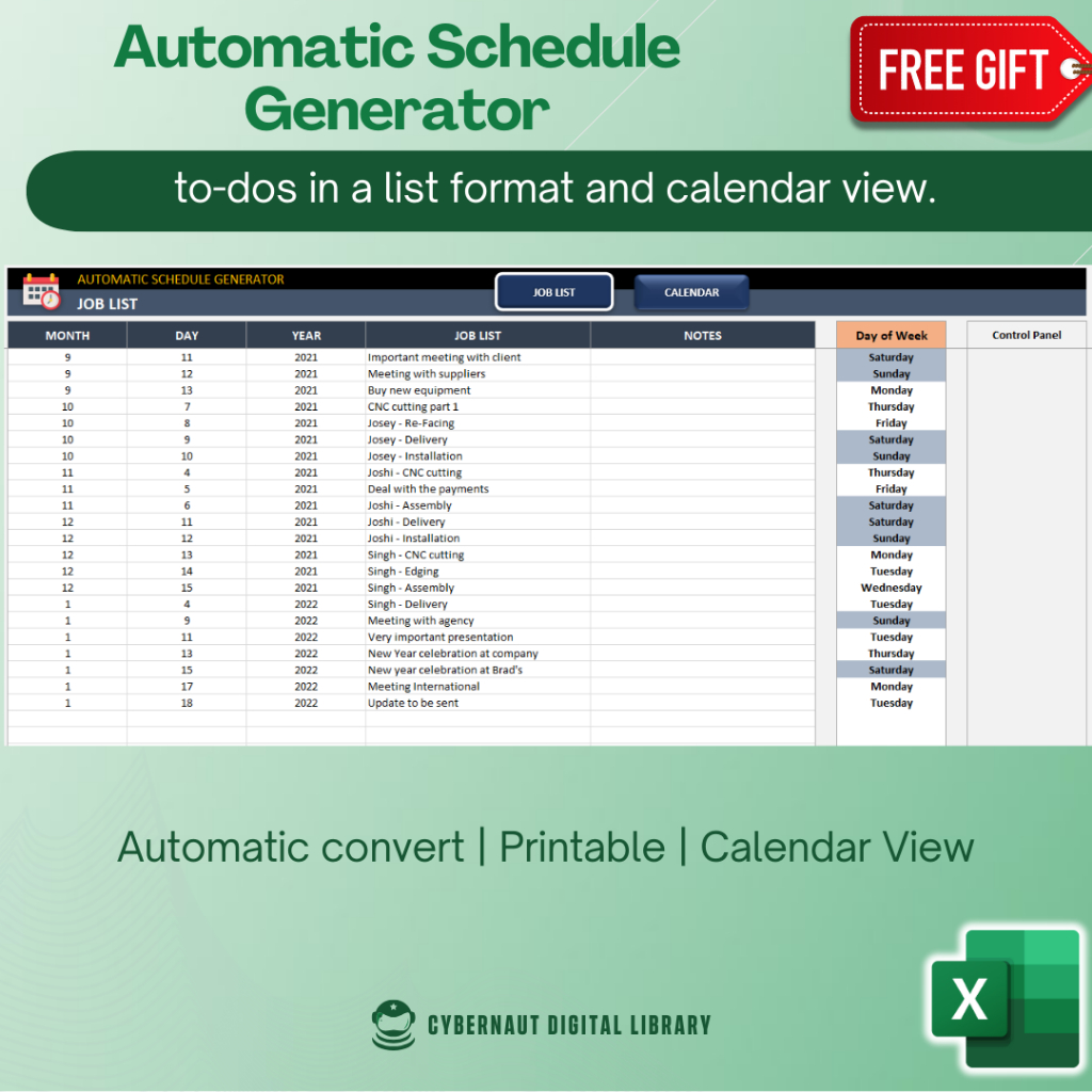 Excel Template Automatic Schedule Generator (Free 12in1 Bundle