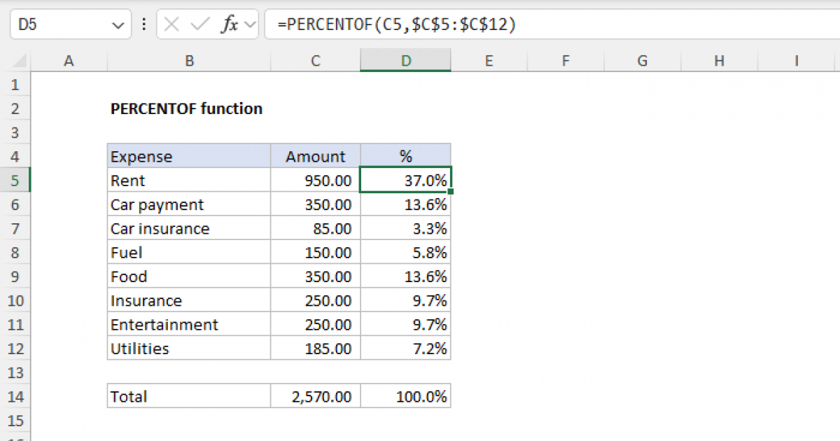 Excel PERCENTOF function Exceljet