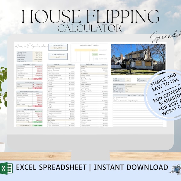 Fix & Flip Spreadsheet, Real Estate Investment Calculator, House