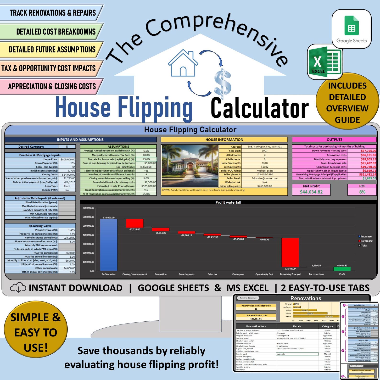 House Flipping Calculator Spreadsheet, Fix & Flip Real Estate
