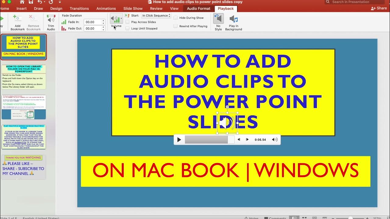 HOW TO ADD MUSIC AUDIO CLIPS TO POWERPOINT SLIDES on MAC OR WINDOWS