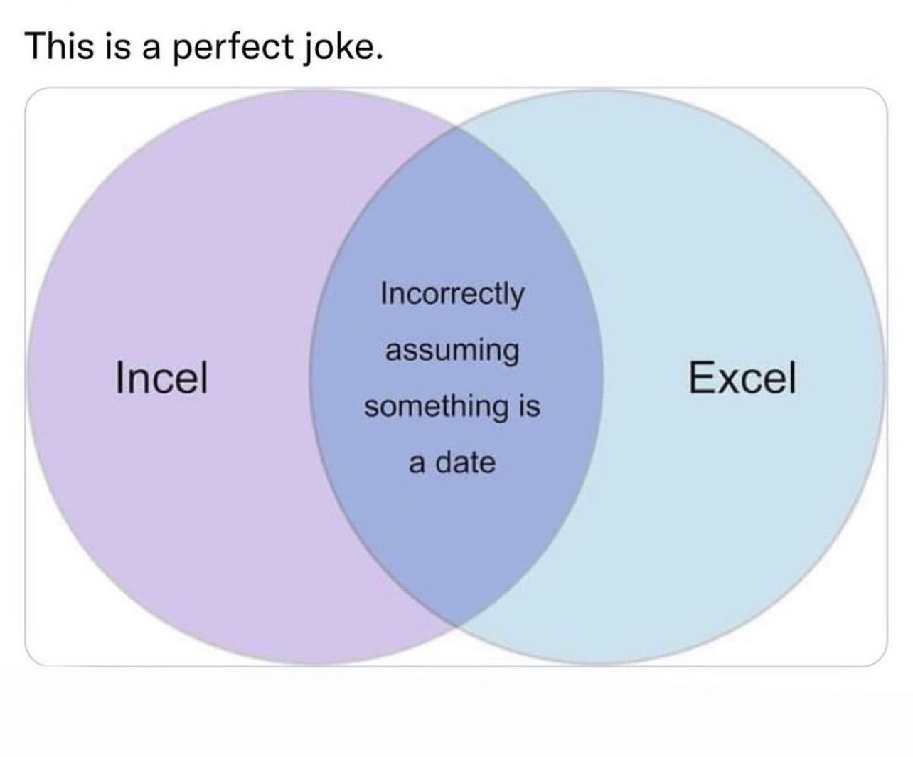 Incel Excel Joke - The term incel is short for “involuntary celibates”. “incel” is a portmanteau of “involuntary celibate.” in its most basic form, incel describes someone, usually a male, who is frustrated by their lack of sexual experiences. Incel, short for involuntary celibacy, is a sociological term [1] and adverse life circumstance. An incel is a member of an online subculture of primarily heterosexual men who identify as being unable to have romantic or sexual relationships. A person (usually a man) who regards himself or herself as being involuntarily celibate and typically expresses extreme resentment and hostility toward those who are sexually active… The term “incel” combines the words “involuntary” and “celibate.” it describes individuals who identify as unable to find romantic or sexual partners despite wanting to. Very high rates of autism, depression, and suicidality. The term describes individuals who can not engage in romantic or sexual relationships despite a. A portmanteau of involuntary celibate [1]) is a member of an online subculture of mostly male and heterosexual [2] people who define themselves as unable to. The incel community makes this an identity. The term incel is short for “involuntary celibates”. Very high rates of autism, depression, and suicidality. The term describes individuals who can not engage in romantic or sexual relationships despite a. What is the definition of incel? “incel” is a portmanteau of “involuntary celibate.” in its most basic form, incel describes someone, usually a male, who is frustrated by their. A person (usually a man) who regards himself or herself as being involuntarily celibate and typically expresses extreme resentment and hostility toward those who are sexually active… Austin, texas — “incels” (involuntary celibates) are ethnically and politically diverse, according to new research from the university of texas at austin, brunel university london, and. What is the definition of incel? An. The incel community makes this an identity. A portmanteau of involuntary celibate [1]) is a member of an online subculture of mostly male and heterosexual [2] people who define themselves as unable to. An incel is a member of an online subculture of primarily heterosexual men who identify as being unable to have romantic or sexual relationships. Its usage has. Very high rates of autism, depression, and suicidality. Throughout history, many men have not had mates or married. A member of a group of people on the internet who are unable to find sexual partners despite…. The incel community makes this an identity. A portmanteau of involuntary celibate [1]) is a member of an online subculture of mostly male and. Its usage has changed over time, and now the term incel refers to an online subculture of. Very high rates of autism, depression, and suicidality. The term describes individuals who can not engage in romantic or sexual relationships despite a. An incel is a member of an online subculture of primarily heterosexual men who identify as being unable to have. Incel, short for involuntary celibacy, is a sociological term [1] and adverse life circumstance. What is the definition of incel? An incel is a member of an online subculture of primarily heterosexual men who identify as being unable to have romantic or sexual relationships. The term “incel” combines the words “involuntary” and “celibate.” it describes individuals who identify as unable. The incel community makes this an identity. Austin, texas — “incels” (involuntary celibates) are ethnically and politically diverse, according to new research from the university of texas at austin, brunel university london, and. What is the definition of incel? The term describes individuals who can not engage in romantic or sexual relationships despite a. Its usage has changed over time,. A portmanteau of involuntary celibate [1]) is a member of an online subculture of mostly male and heterosexual [2] people who define themselves as unable to. What is the definition of incel? Its usage has changed over time, and now the term incel refers to an online subculture of. The incel community makes this an identity. Very high rates of. Austin, texas — “incels” (involuntary celibates) are ethnically and politically diverse, according to new research from the university of texas at austin, brunel university london, and. The term incel is short for “involuntary celibates”. “incel” is a portmanteau of “involuntary celibate.” in its most basic form, incel describes someone, usually a male, who is frustrated by their lack of sexual. A member of a group of people on the internet who are unable to find sexual partners despite…. Its usage has changed over time, and now the term incel refers to an online subculture of. Very high rates of autism, depression, and suicidality. “incel” is a portmanteau of “involuntary celibate.” in its most basic form, incel describes someone, usually a.Incel Excel / Humorous Meme Design Memeshirt Posters and Art Prints
