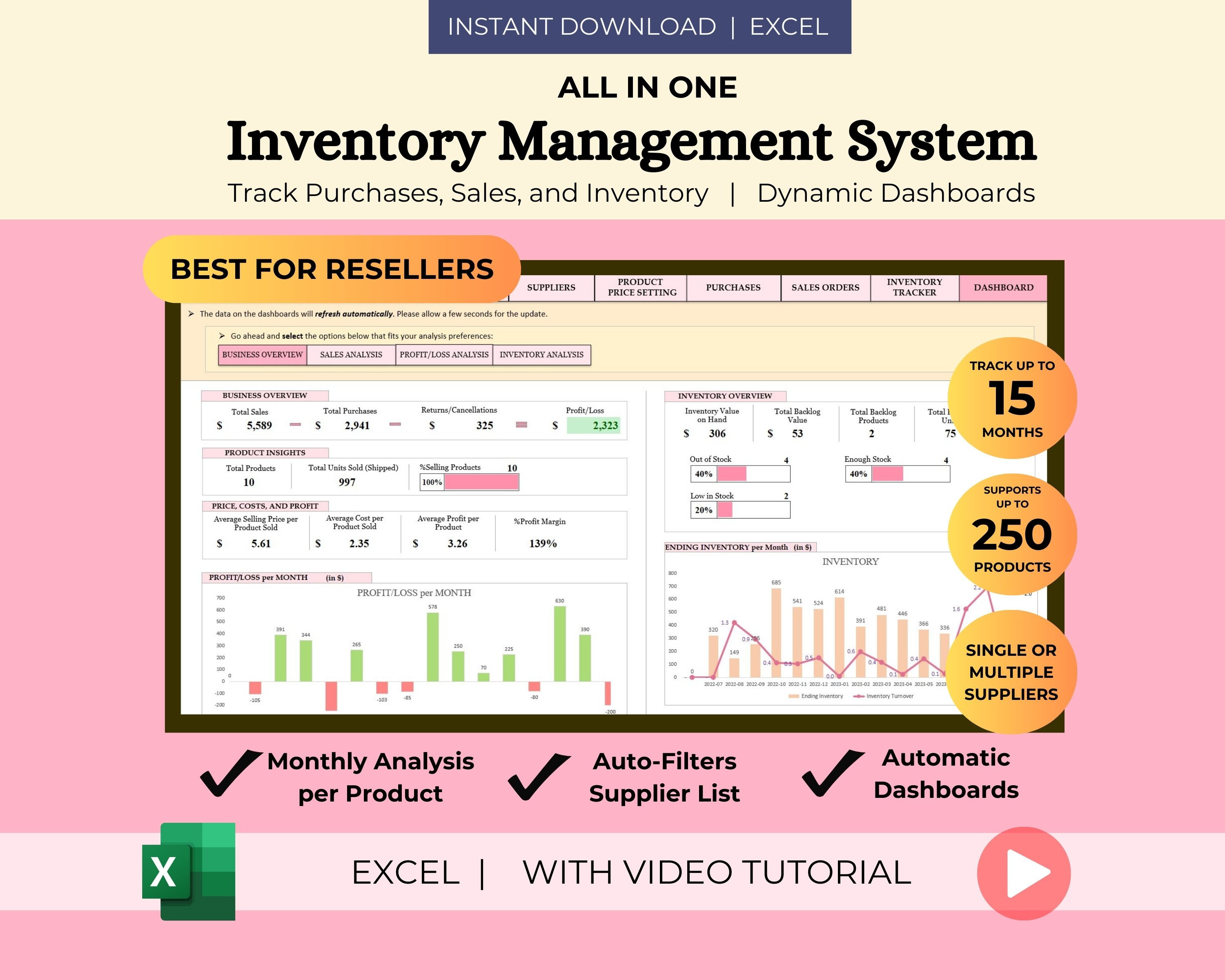 Inventory Management Excel Spreadsheet for Resellers, Sales and Profit