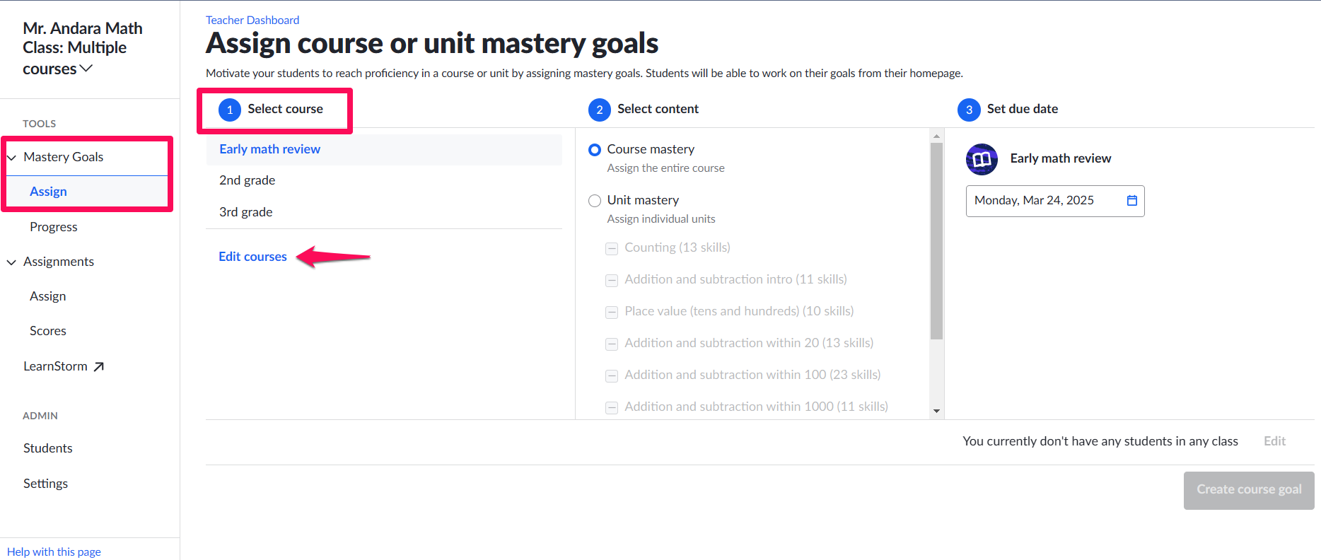 How do I add a course to my class? Khan Academy Help Center