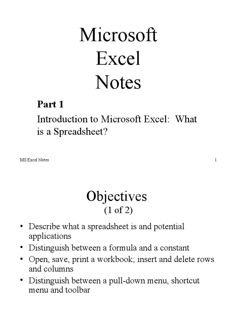 Excel Notes PDF Microsoft Excel Spreadsheet