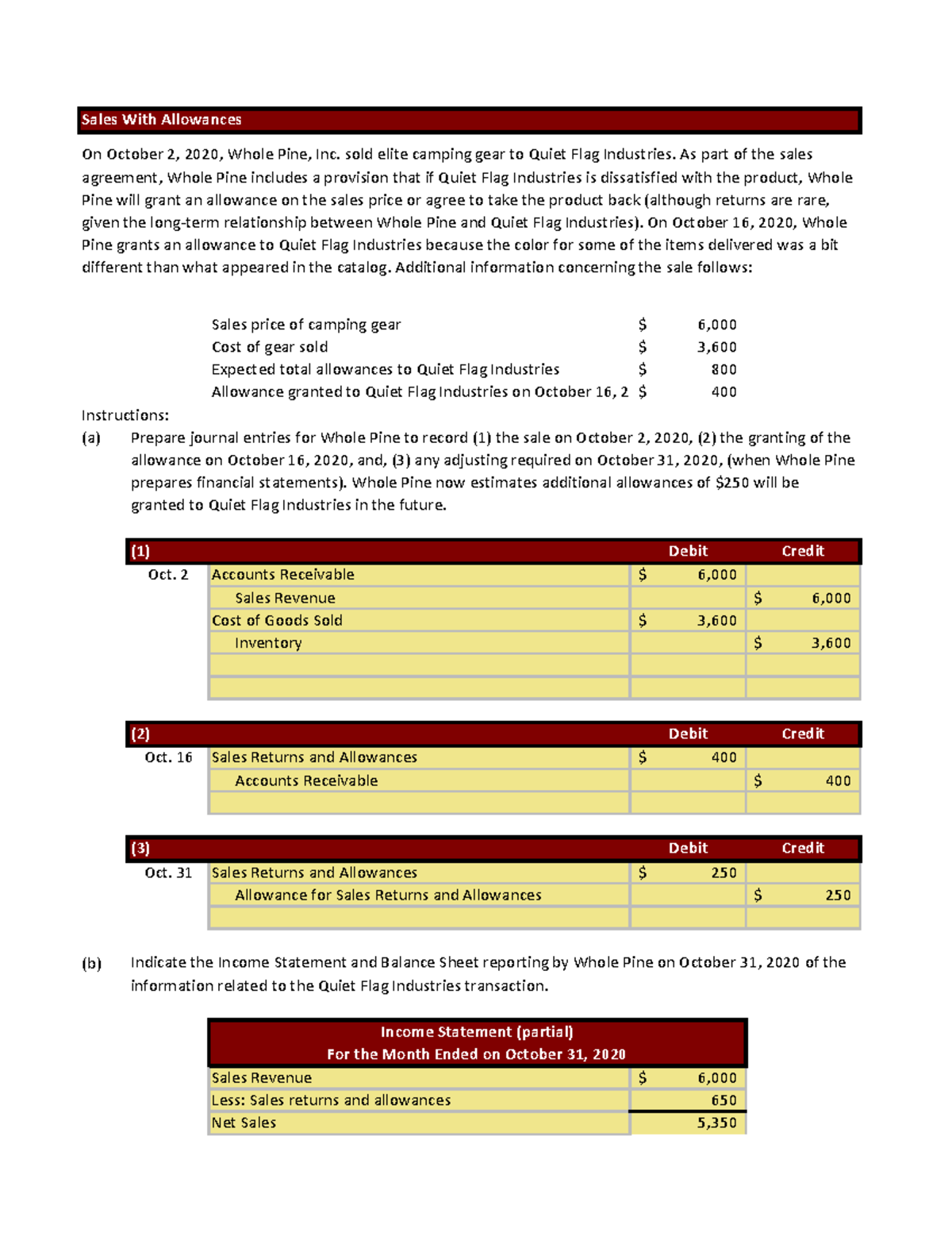 PA Excel Worksheet D105 Sales With Allowances Sales price of camping