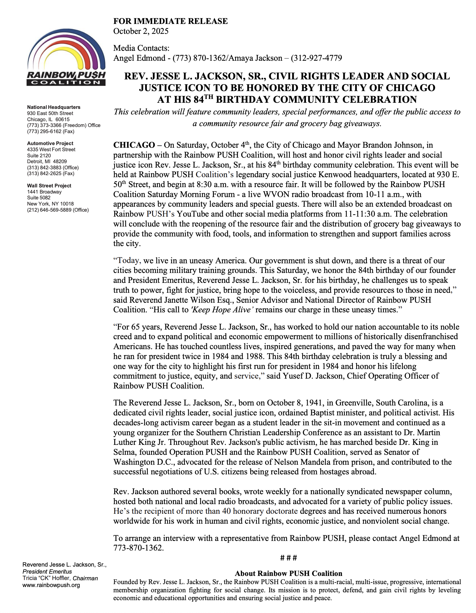 REV. JESSE L. JACKSON, SR., CIVIL RIGHTS LEADER AND SOCIAL JUSTICE ICON