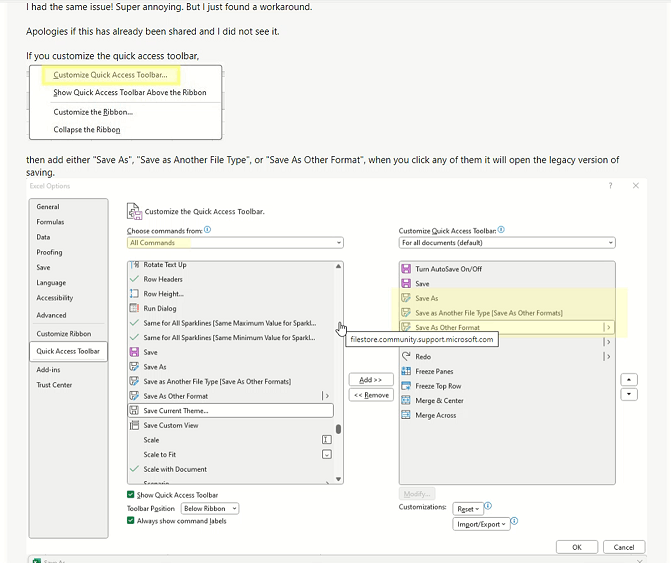 Remove Quick Access From Excel Save As